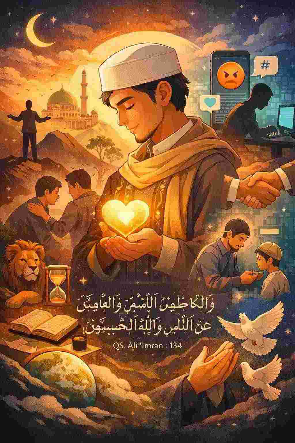 Di zaman digital hari ini, medan ujian ayat ini terasa semakin nyata. Ruang komentar sering dipenuhi reaksi tanpa jeda, prasangka tanpa verifikasi, dan penilaian tanpa empati. Ali ‘Imran 134 hadir sebagai pengingat sunyi bahwa kekuatan sejati bukan pada suara paling keras, tetapi pada hati yang paling mampu mengendalikan dirinya.