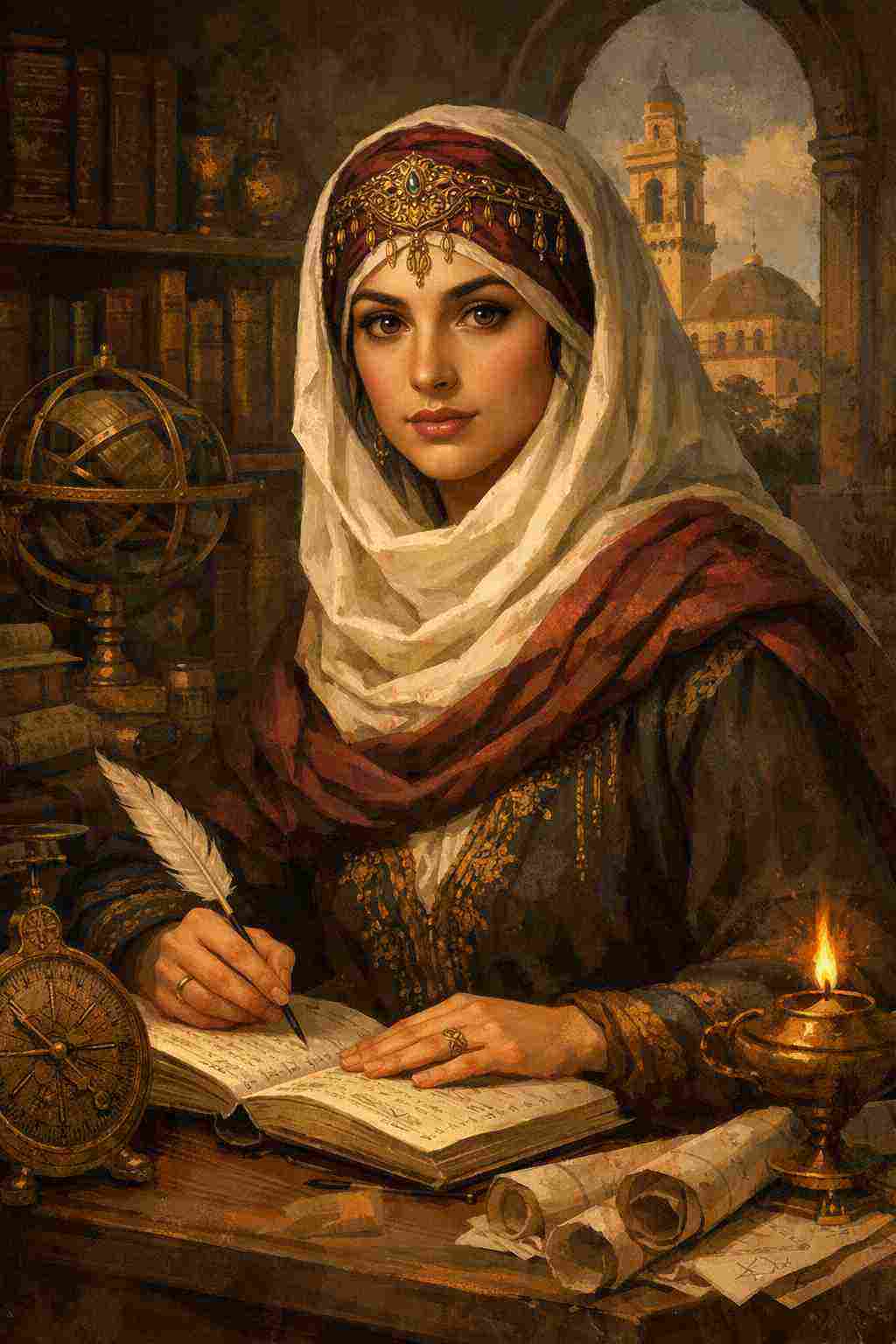 Pada episode kali ini, kita akan mengenal sosok Lubna dari Córdoba—seorang mantan budak yang menjelma menjadi jenius matematika, penulis, dan pustakawan istana pada masa kejayaan Andalusia. Kisahnya bukan hanya tentang kecerdasan, tetapi juga tentang ketekunan, keberanian, dan bagaimana ilmu pengetahuan mampu mengubah nasib seseorang.