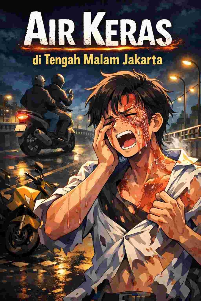 Cairan itu menghantam wajah, dada, tangan, dan mata Andrie. Asam sulfat bekerja tanpa ampun. Dalam hitungan detik, bajunya mulai meleleh seperti lilin yang didekatkan ke api.