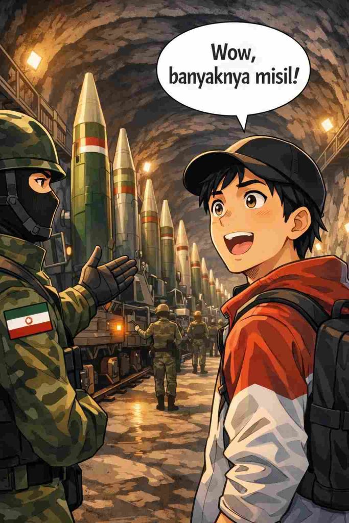 Nuan bayangkan, saat pian lagi santai. Kopi di tangan. Hidup terasa aman. Lalu, Iran muncul bukan dengan pidato, tapi dengan tur properti paling menyeramkan di planet ini. Bukan rumah, bukan apartemen, tapi kota bawah tanah. Isinya? Bukan manusia. Tapi, rudal. Ribuan. Disusun rapi seperti gudang logistik akhir zaman.