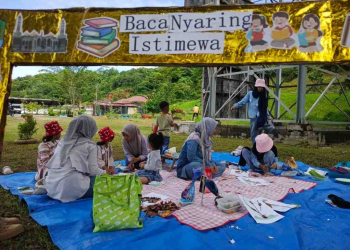 Oleh Nita Juniarti 7 peserta terdaftar, ditambah orangtua setiap anak, mengikuti kegiatan Baca Nyaring Istimewa di Taman Perkantoran Abdya, Minggu (28/9) dari Sigupai...